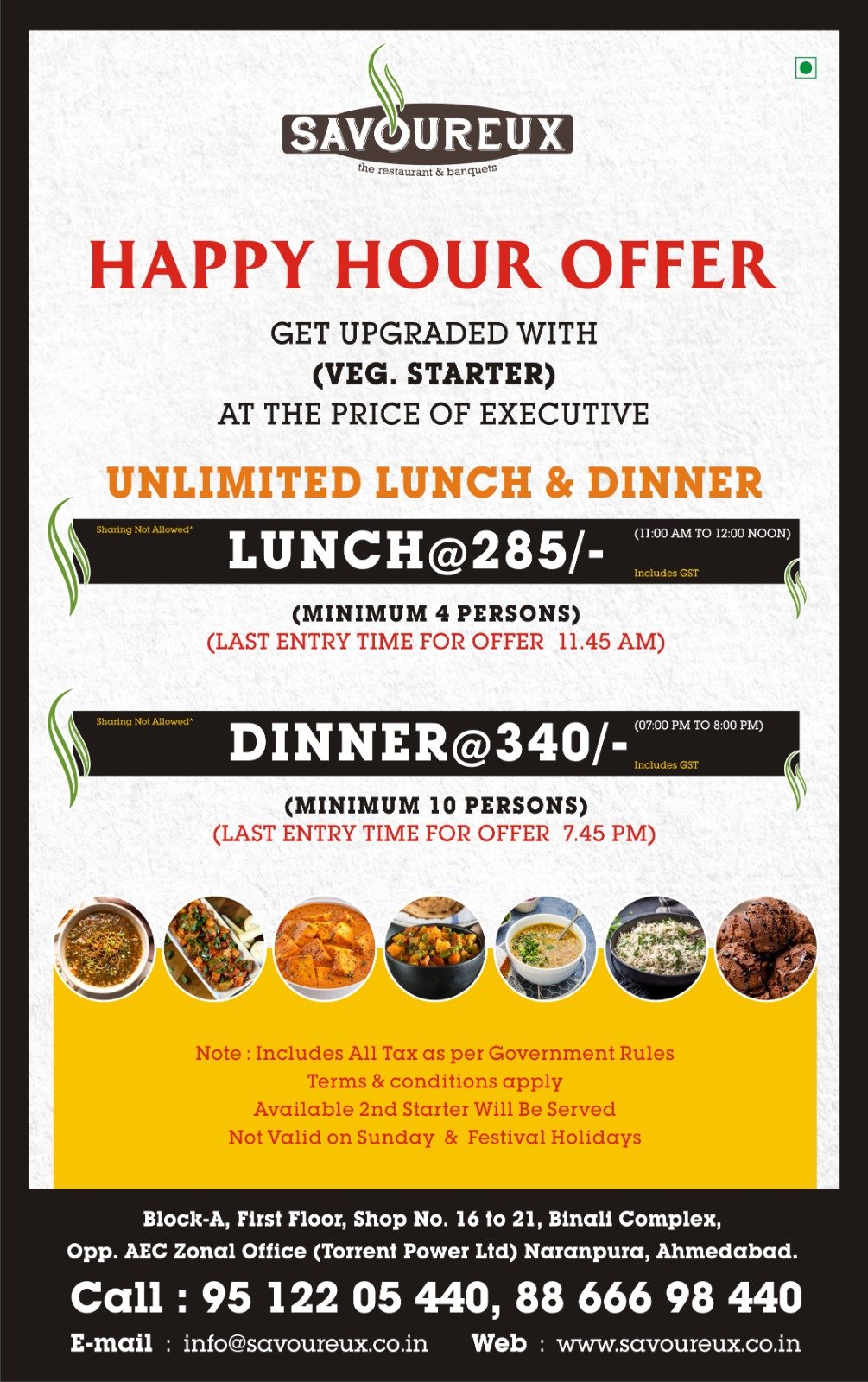 "Savoureux" In French Means Delicious, Savoury, Flavoursome, Yummy,mouth Watering, Tasty, Succulent,etc. At "Savoureux" We Walk The Talk By Serving Our Guests Our Multi-cuisine Offering- Punjabi - Chinese - Italian - Mexican - Serving All Mouth Watering Yummy Delicious Food.